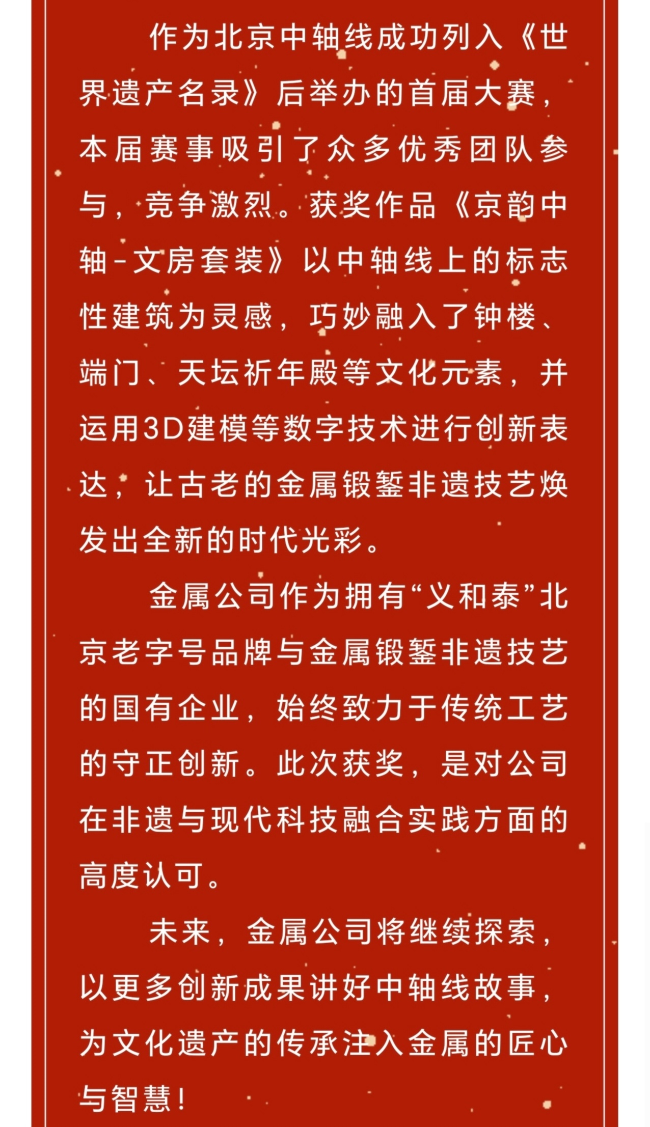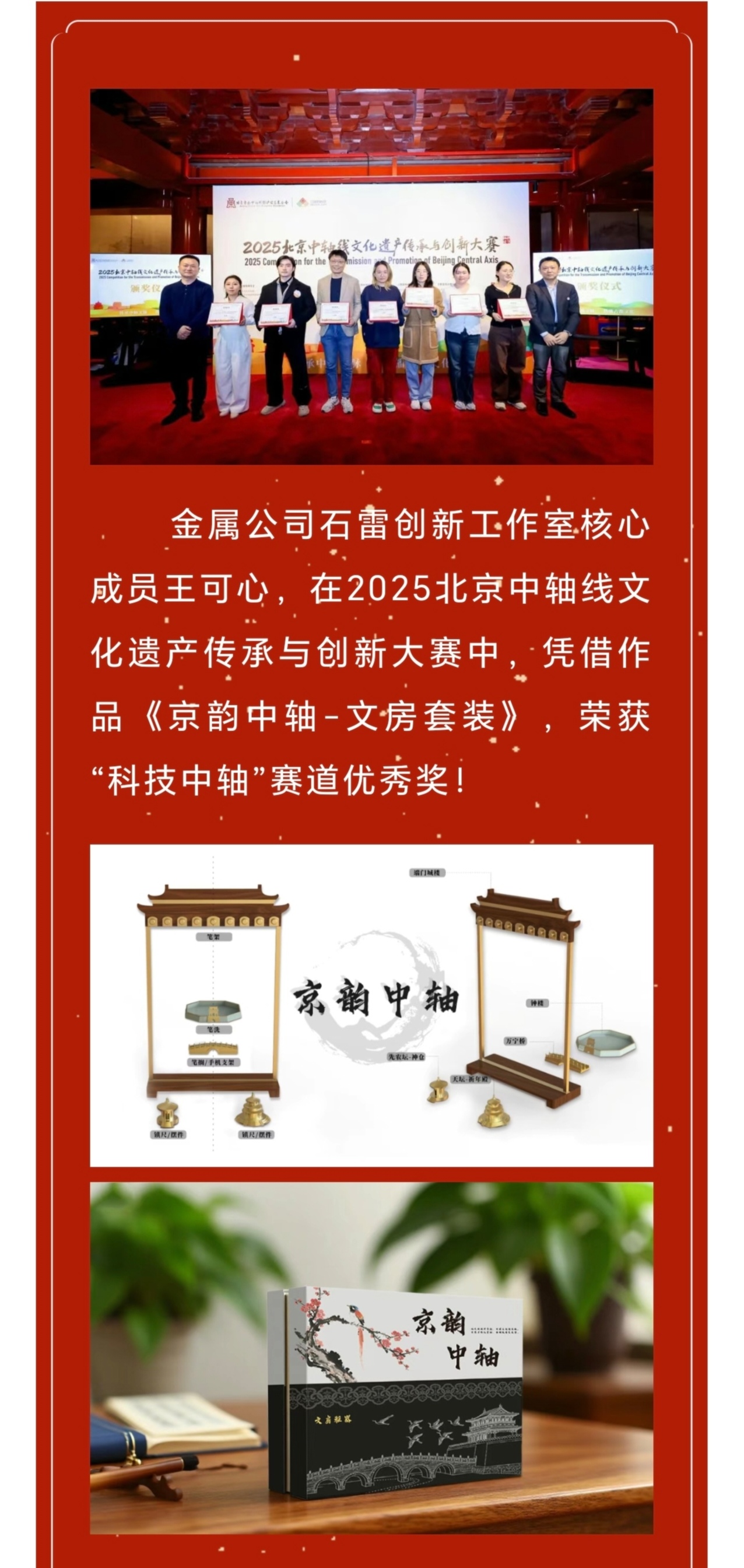 喜报!金属公司《京韵中轴-文房套装》作品荣获北京中轴线创新大赛优秀奖!