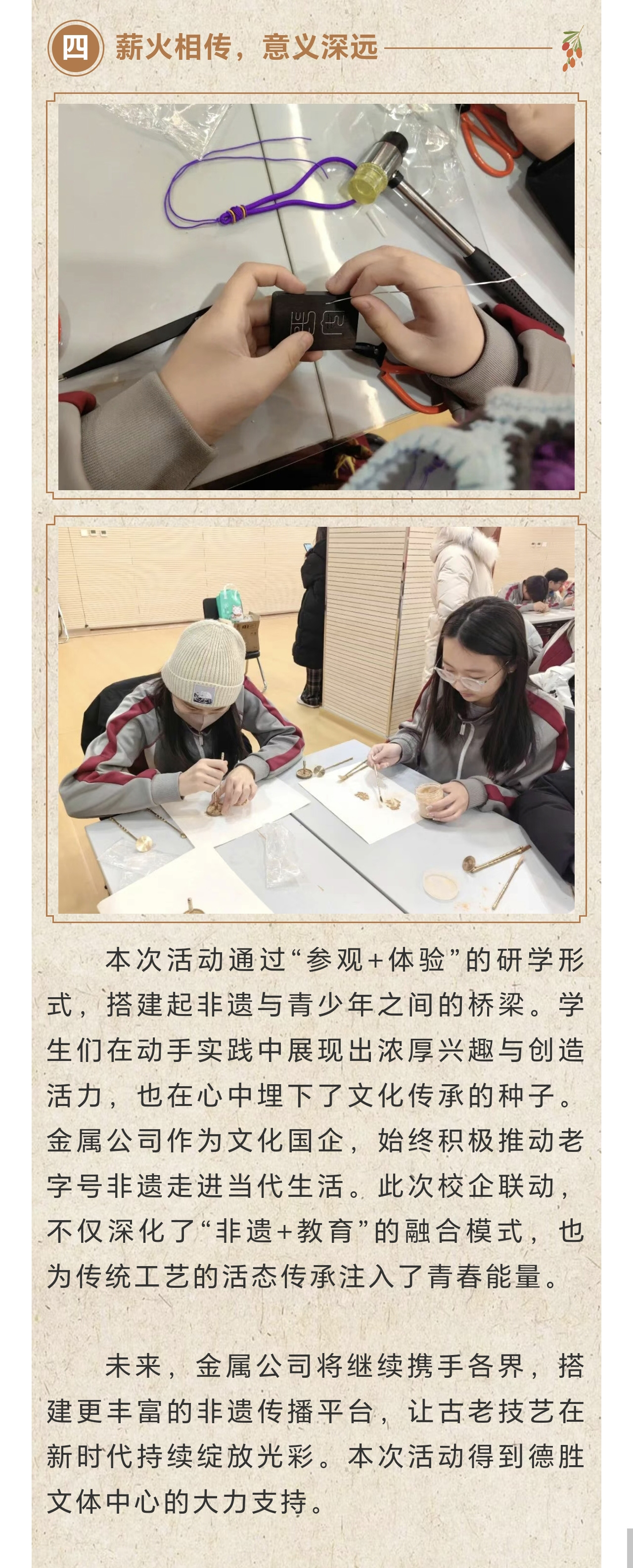 校企携手 薪火相传:金属公司圆满举办青少年非遗研学活动
