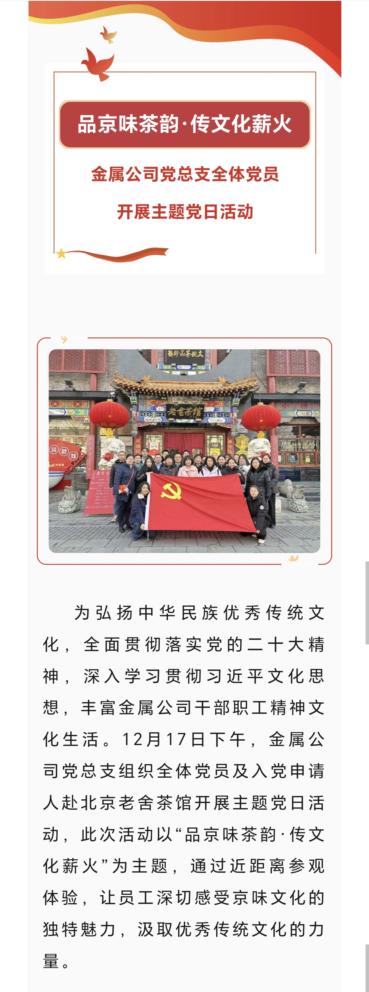 品京味茶韵·传文化薪火——金属公司党总支全体党员开展主题党日活动